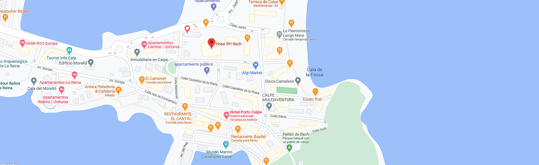 The RH Ifach hotel is located just 150 meters from the “Fossa” Beach where you can enjoy the great view of the popular Rock of Ifach. Our hotel is located a few meters from the city center and next to the commercial area of ​​Calpe.